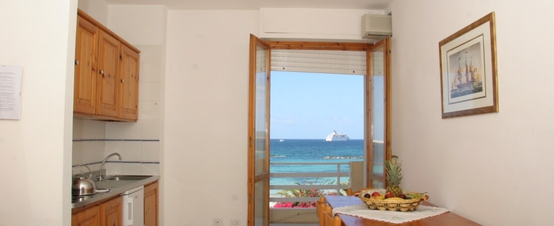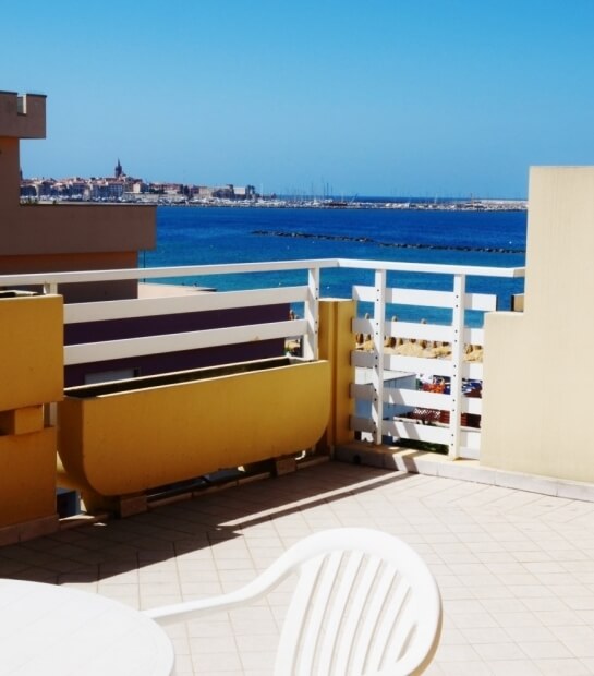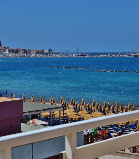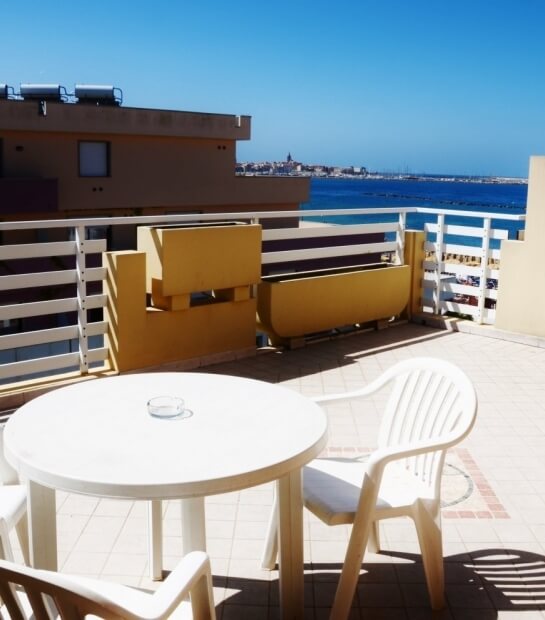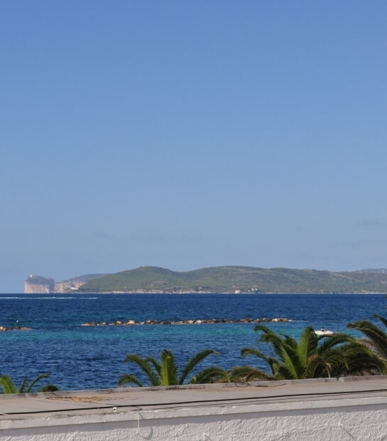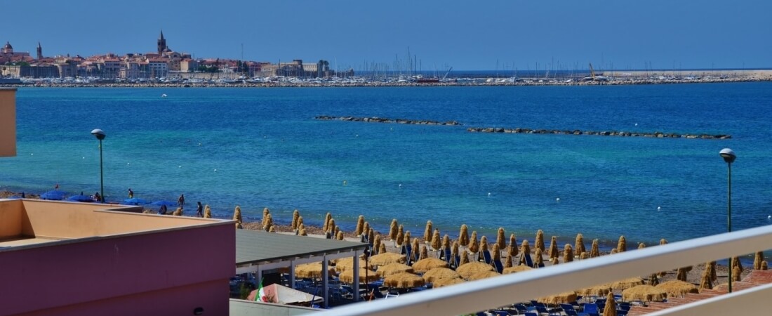 The 2-storey building is located in front of the white beaches of the lido at Alghero.
